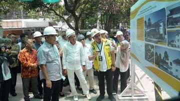 Ketua MPR RI Ahmad Muzani meninjau revitalisasi Mess MPR yang terbakar. Gedung cagar budaya ini diharapkan segera selesai untuk kepentingan masyarakat.