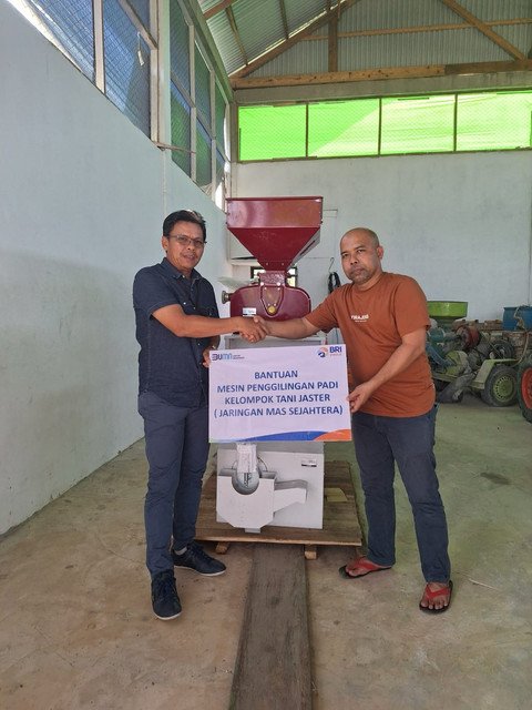 BRI serahkan bantuan mesin penggiling padi untuk Koperasi Produsen Jaring Mas Sejahtera yang menyuplai bahan pangan program Makan Bergizi Gratis (MBG) di Kota Pekanbaru dan Kabupaten Kampar, Riau. Foto: Dok. BRI