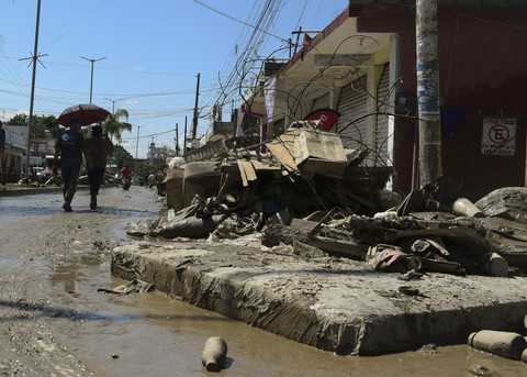 Sejumlah warga mulai membersihkan puing-puing pascabanjir di Alamo, negara bagian Veracruz, Meksiko, Senin (13/9) waktu setempat.