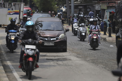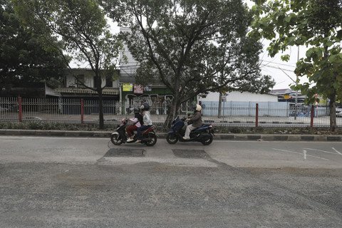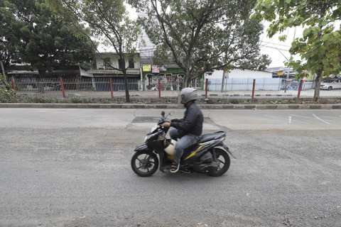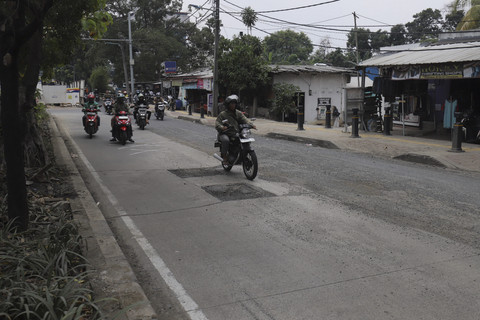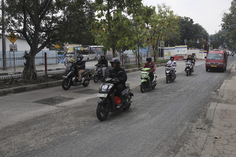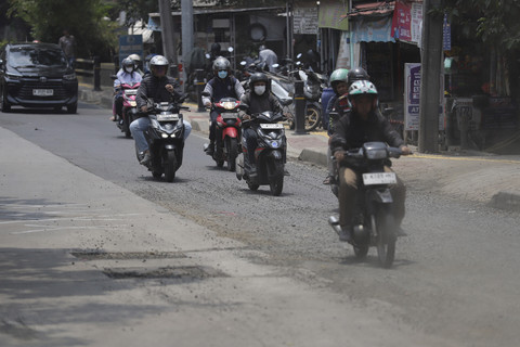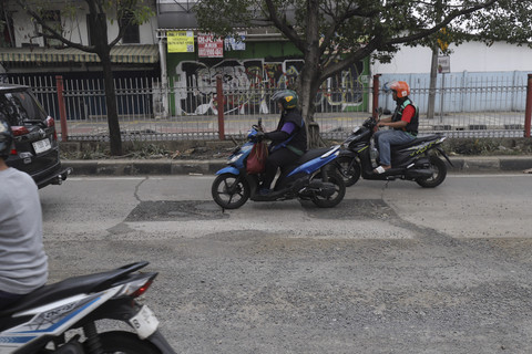 Sejumlah pengendara masih berhati-hati, berusaha menghindari bagian jalan yang rusak.