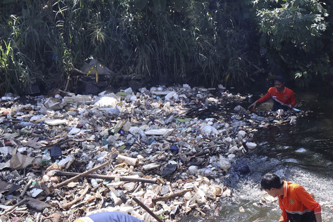 Menurut petugas DLH, sampah yang menumpuk di aliran Sungai Cikaret ini didominasi oleh limbah rumah tangga yang telah menumpuk selama tiga bulan.