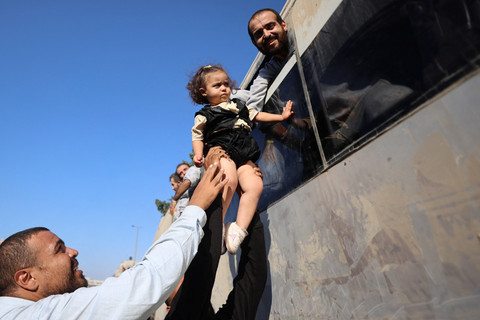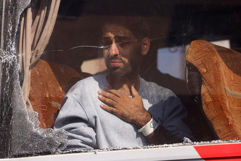Warga Palestina yang dibebaskan dari penjara Israel tiba di Gaza pada Senin (13/10) waktu setempat. Mereka datang dengan menggunakan bus ke Gaza.