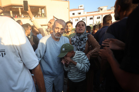 Salah satu warga Palestina bahkan memeluk dan menggendong anaknya. Foto: Omar AL-QATTAA / AFP