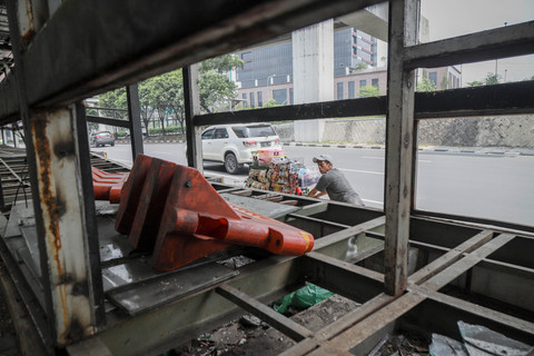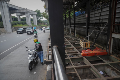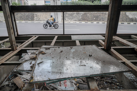 Halte BNN 1 di Jalan MT Haryono, Cawang, Jakarta Timur, tampak terbengkalai setelah lama tidak beroperasi. Foto: Jamal Ramadhan/kumparanPantauan kumparan pada Senin (13/10) pagi, halte tersebut terlihat rusak parah. Foto: Jamal Ramadhan/kumparanPelat besi di lantai dan tangga jembatan penyeberangan orang (JPO) hilang, menyisakan rangka besinya. Foto: Jamal Ramadhan/kumparanBagian kaca tampak pecah, sementara besi atap juga terlepas. Foto: Jamal Ramadhan/kumparanKondisi ini membuat halte tampak kumuh dan seram. Foto: Jamal Ramadhan/kumparanSebelumnya, Gubernur DKI Jakarta Pramono Anung sempat berencana membongkar halte yang berdiri di atas trotoar tersebut. Foto: Jamal Ramadhan/kumparanPramono menyebut, rencana ini akan dibicarakan dengan PT Transjakarta. Foto: Jamal Ramadhan/kumparanNamun, tiga bulan berlalu, halte itu masih berdiri tanpa fungsi. Foto: Jamal Ramadhan/kumparanWarga yang kerap melintas pun mengaku resah melihat kondisi halte yang dibiarkan begitu saja. Foto: Jamal Ramadhan/kumparanFoto: Jamal Ramadhan/kumparanFoto: Jamal Ramadhan/kumparan