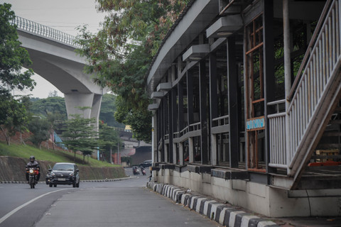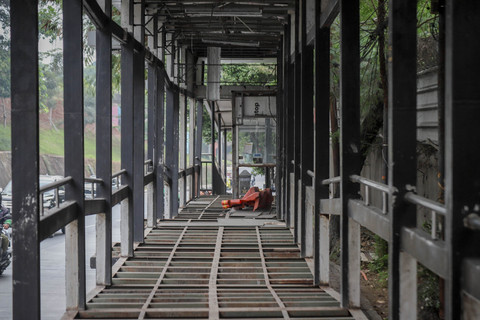 Halte TransJakartaBNN 1 di Jalan MT Haryono, Cawang, Jakarta Timur, tampak terbengkalai setelah lama tidak beroperasi.