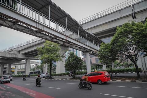 Pengendara ojek online melewati halte BNN 1 di Jalan MT Haryono, Cawang, Jakarta Timur, Senin (13/10/2025). Foto: Jamal Ramadhan/kumparan