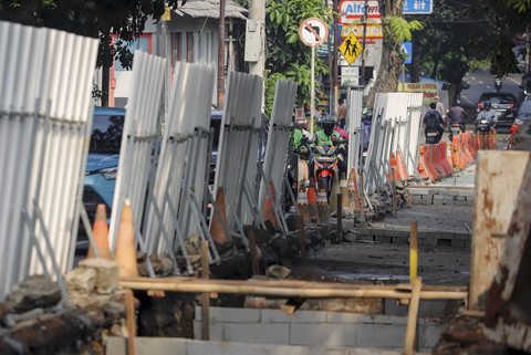 Pengendara melaju dikawasan proyek perbaikan jalan di Jalan Pejaten Raya, Jakarta Selatan, Selasa (24/6/2025). Foto: Jamal Ramadhan/kumparan