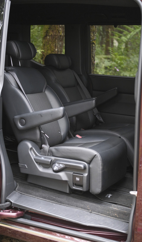 Kursi baris kedua misalnya, bisa digeser jauh ke belakang untuk mendapatkan posisi santai. Ada sandara betis yang bisa aktifkan. Gak cuma geser ke belakang, ke samping pun bisa untuk akses anak-anak modar-mandir di dalam mobil.