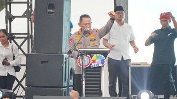 Kapolri Jenderal Listyo Sigit Prabowo hadir di Apel Akbar Kebangsaan Buruh Indonesia di Bekasi, mendukung kebijakan pemerintah dan RUU Ketenagakerjaan.