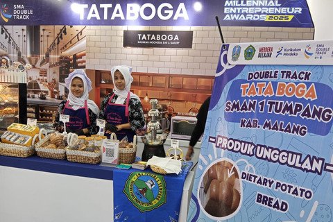 “Jadi mereka (siswa SMA) yang tidak bisa melanjutkan kuliah bisa mandiri melalui usaha yang telah dirintis melalui program Double Track,” ujar guru tata boga SMAN 1 Tumpang Kabupaten Malang ini.
