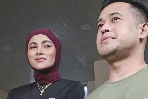 Olla Ramlan didamping mantan suami buat laporan untuk buzzer yang serang keluarganya, Polda Metro Jaya, Selasa (15/10/2024). Foto: Giovanni/kumparan