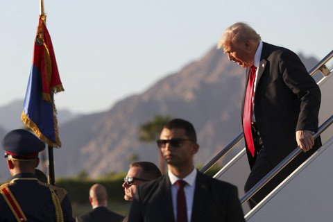 Kedatangan Trump disambut Presiden Mesir Abdel Fattah El-Sisi. El-Sisi kemudian mengantar Trump ke mobilnya. Keduanya lalu pergi dengan mobil yang sama.