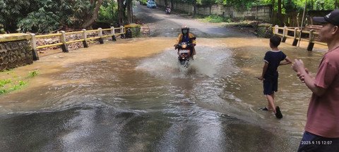 Salah satu warga, Wedy (38 tahun), apes lantaran motornya langsung mogok usai menerobos banjir.
